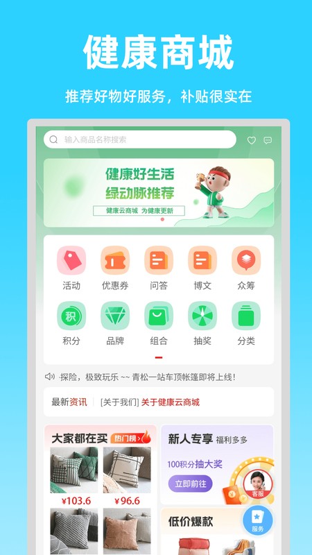 绿动脉,您的智能健康助手,让健康服务尽在指尖!我们融合线上线下资源,打造全方位、快捷的健康服务平台。在绿动脉APP中,您可以轻松浏览健康商城。精选好物与优惠服务等您来享,让健康消费更经济。依托“即时结算”与“理赔服务卡”,我们无缝对接保险、持卡人与合作定点多类卫生机构,实现补充医疗保险“刷卡即付”,省去垫付与繁琐理赔,数据秒传,理赔即时生效,为您的健康之路保驾护航。 应用功能