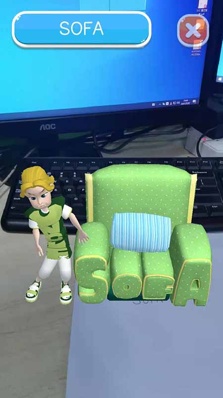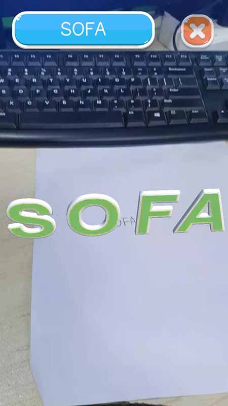 App后台能同步处理AR对周围环境的识别以及单词内容的下载,同时支持指定单词内容的手动下载。本次更新还添加了离线AI语音对话功能,用户可根据提示内容跟角色互动。动物水果等角色拟化的单词通过AR形式展现。