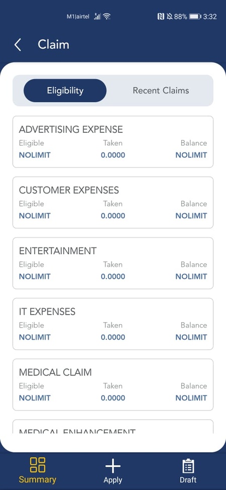 Employees can view their personal particulars like address, children details, spouse details, bank account & education details. Employees can change their particulars online and submit for HR manager approval.