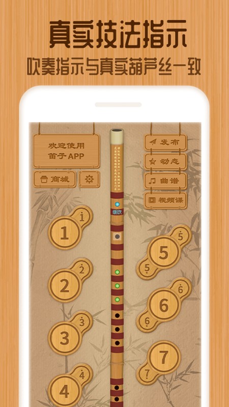 笛子是上手简单的民族乐器之一,让笛子成为您的启蒙乐器,手机就能演奏笛子。跟着APP,短时间学会《生日歌》、《虫儿飞》等入门歌曲。