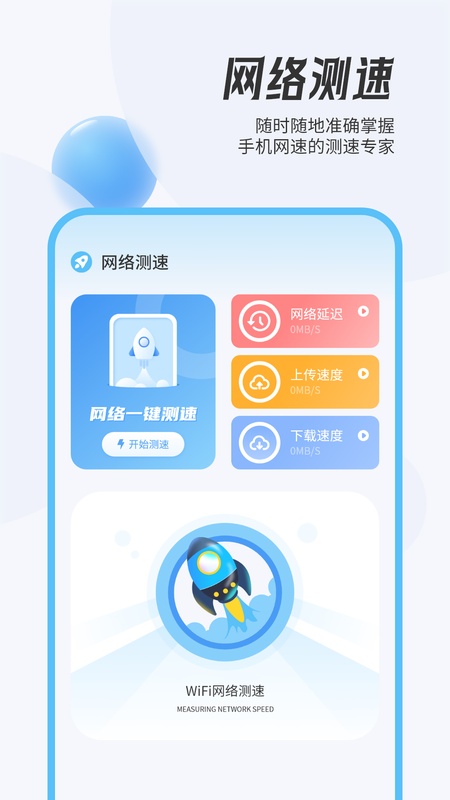 可提高手机运行速度,还具备网络测速功能,能对2G、3G、4G、5G网络进行检测。