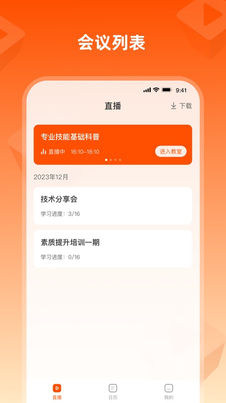 提供简单明了的直播日历,方便快速进入远端教室。 功能特色