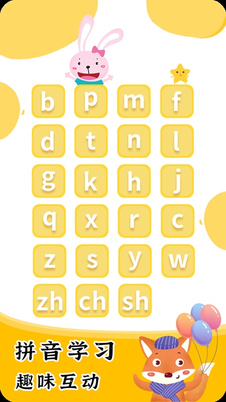 宝贝学拼音采用全新的动画与汉字、拼音相结合的识字图形来刺激幼儿视觉、听觉、触觉等多种感官的发展。激发幼儿想象力,让孩子边玩耍边学习,翱翔在知识的海洋中!