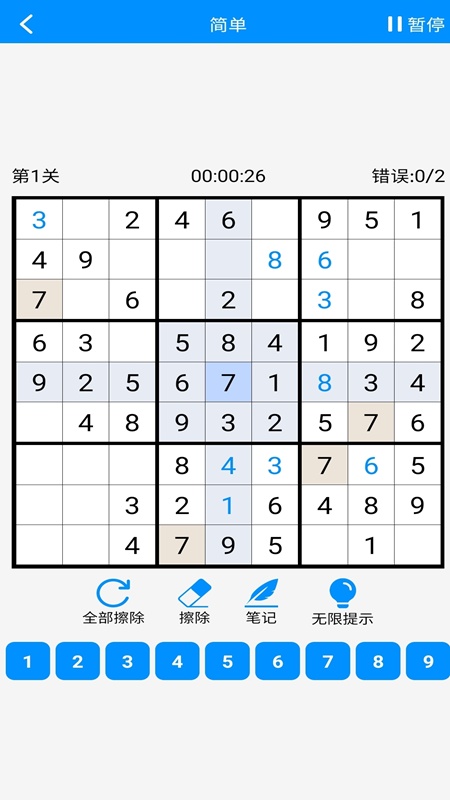 题目丰富,设有简单、中级、困难、专家四个级别模式,能满足不同玩家的需求。具备辅助检查错误的功能,并且重复项会突出显示,方便玩家及时发现问题。还有笔记功能,可对不确定的数字进行笔记记录提示。