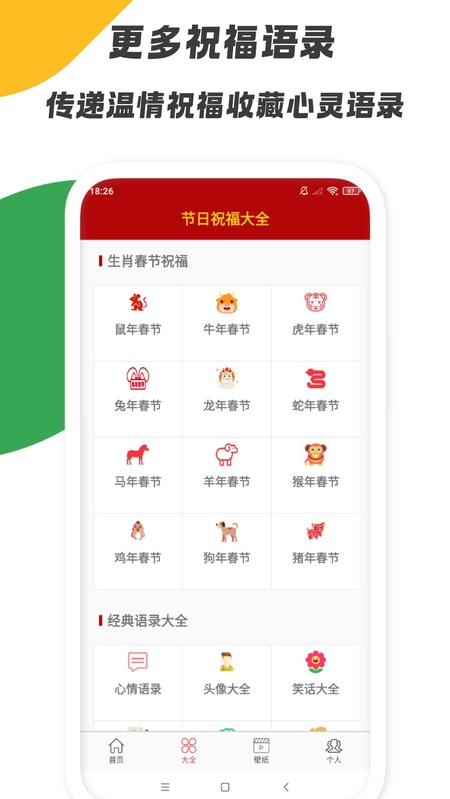 随着中西方文化的交流和影响,越来越多的国外节日也为中国大众所接受,比如情人节、父亲节、父亲节等。中国拥有历史悠久的祝福文化,在现代生活中也体现得淋漓尽致。不仅有传统的祝福方式,短信、贺卡邮件等现代技术手段,也成为人们彼此间的祝福工具。 应用功能