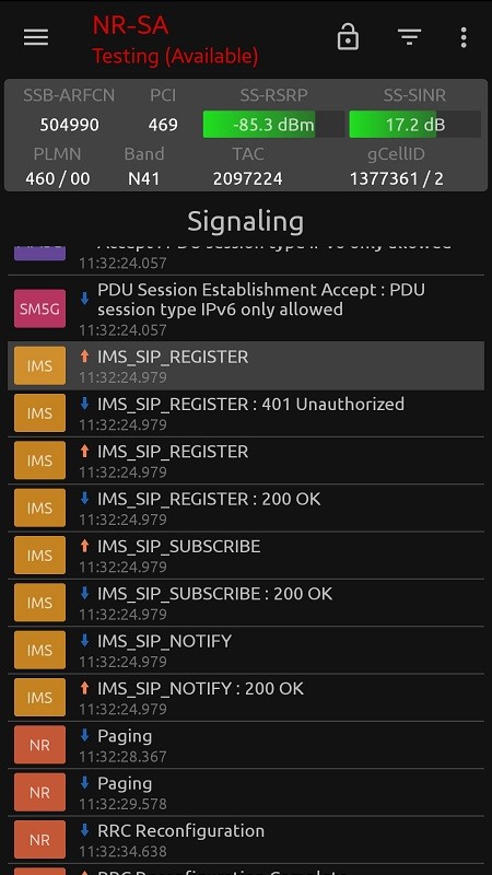 网络信号大师是一款应用于无线网络优化领域的基于智能终端的网络优化软件。它支持目前全球流行的网络制式,能提供各层协议的网络层级的信令解码,解码层级包括L1、L2、L3以及SIP业务解码。集成了丰富的话音和数据测试功能,可对GSM、GPRS、EDGE、UMTS、HSPA以及CDMA、LTE进行实时信令解码,还能通过实时解析话音和数据的交互信令,帮助用户实时定位网络问题。