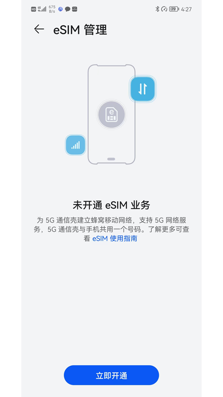 把设备和手机连接好,只需要选择一张主卡,在这张主卡支持下开通eSIM服务,用户就可以轻松享受到5G网络体验。