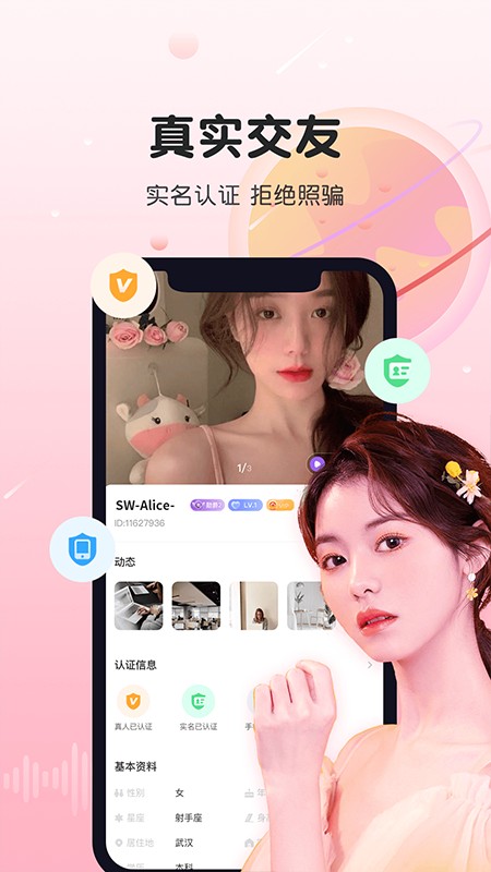 强调真实社交,主播实人认证,营造安全靠谱的交友环境,解决陌生人社交难题。
