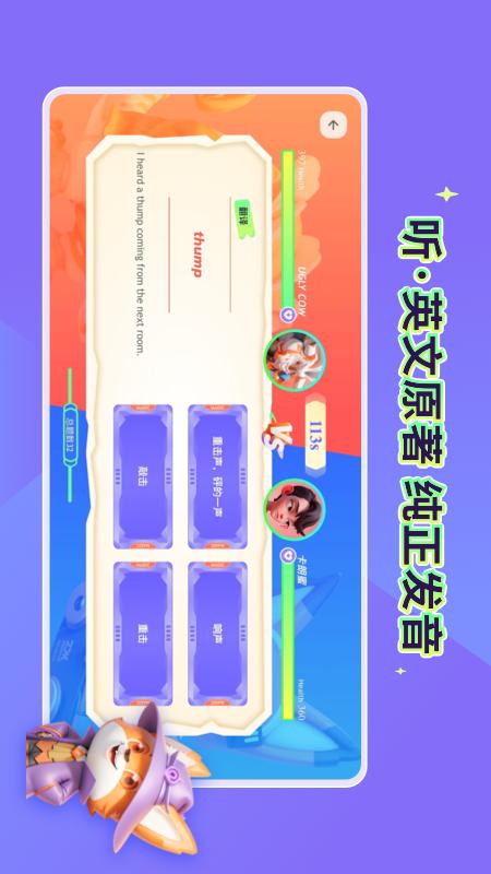 拥有海量英文名著有声书,能让用户充分沉浸在英文环境中;有专业导读讲解故事,帮助用户更好地理解名著内容;具备AI口语测评功能,可纠正发音,让表达更标准;设置人机单词PK决斗场,增加学习的趣味性和挑战性。