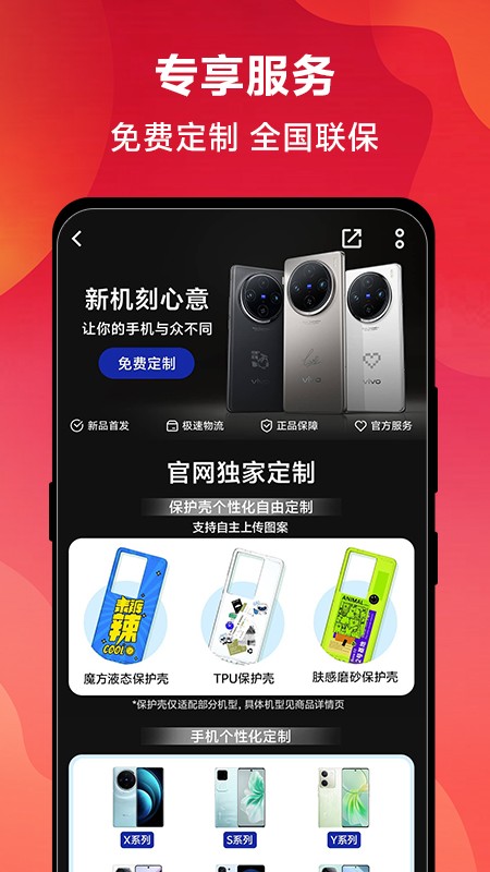 在vivo商城可以了解新产品信息,查询附近的vivo门店。还能享受全国联保、7天无理由退换货、手机定制等服务。同时提供手机镭雕定制,免费定制专属新机;手机优先顺丰发货,30天换货等服务。