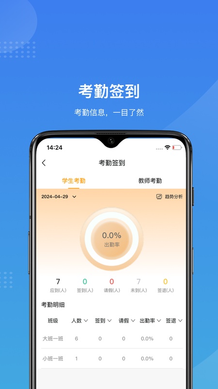 健康守护利用智能硬件智慧应用,把好幼儿入园晨检第一关,高效精准检测并实时播报晨检情况,让家长老师实时掌控;规范幼儿带药操作流程,家长在线申请,教师一目了然,定时提醒辅助老师准确完成任务。