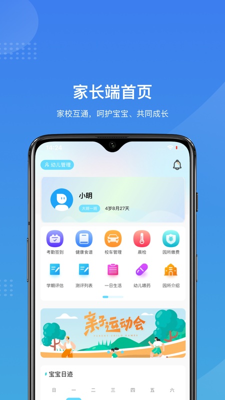 日常管理涵盖招生管理、考勤签到、审批处理、校园日程、通知消息等园所运营相关日常工作。