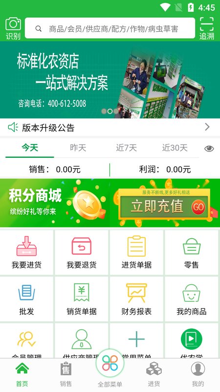 优农帮 - 智慧农资ERP涵盖农资经营日常进销存与智能诊单 - 配方功能,贯穿农资进销存整个经营周期。包含智能诊单、配方管理、农资进货、农资销货、限用药实名销售、农资退货、资金管理、仓库管理、资料管理、系统设置、禁限用药、个人中心、帮助中心、消息中心等功能模块。支持电子台账自动对接监管平台及导出功能,还提供农资监管与农资经营数据的大数据可视化分析数据支撑。