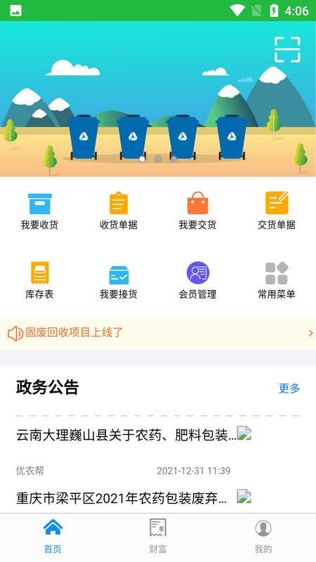 优农帮利用信息化溯源技术,依托回收数字化监管平台,将农药包装废弃物的回收、运输、仓库、利用及无害化处置全流程追溯,各个环节追根溯源,有迹可寻,使农药包装废弃物的回收处置工作高效、便捷、可操作、可追踪。根据管理办法,农药包装废弃物的回收处置费用是遵循“谁生产谁负责,谁经营谁回收”的原则,优农帮也在协助农业主管部门,探索一种“政府前期引导,后期农药生产企业逐渐参与”的回收处理长效机制的建立,以大力推进农药包装废弃物的资源化利用和无害化处理,助推农业绿色发展。 本应用针对农药包装废弃物回收的各个阶段,采用多角色分工合作的机制,设立回收点、回收机构、运输司机、仓储人员等角色,兼容多个地区多种废弃物回收模式,规范透明资金流动,简化回收流程的同时利于地方政府进行监管。 功能特色