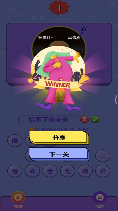 这是一款猜歌曲名字的娱乐软件,拥有庞大的音乐资源库,应用界面也十分的精致清新,用户可以听到很多经典的歌曲,根据歌曲的旋律来猜出歌曲的名字。歌曲类目众多,喜欢音乐的你也赶紧来挑战下吧。