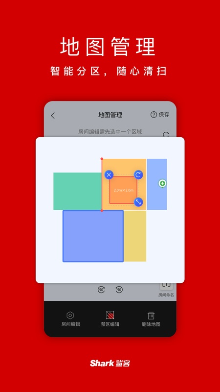 支持地图管理,包括地图保存、分区、区域管理,使机器人更了解用户的家。