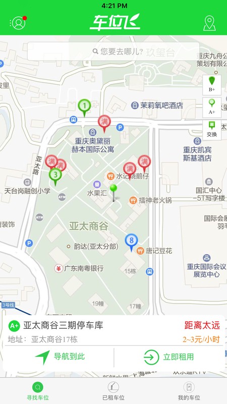 车位飞为不同用户提供了丰富的功能。对于车位主,可通过APP绑定智能车位锁,进行车位管控,防止车位被占;还能将车位碎片化闲置时段出租,增加车位收益;并且可以分享给亲朋好友,提升车位利用价值。对于临停用户,可通过APP在线查找车位、进行车位导航、在线预订和在线支付;通过APP与车位智能共享设备互联,实现自助停车,精准、便捷,省时更省心。