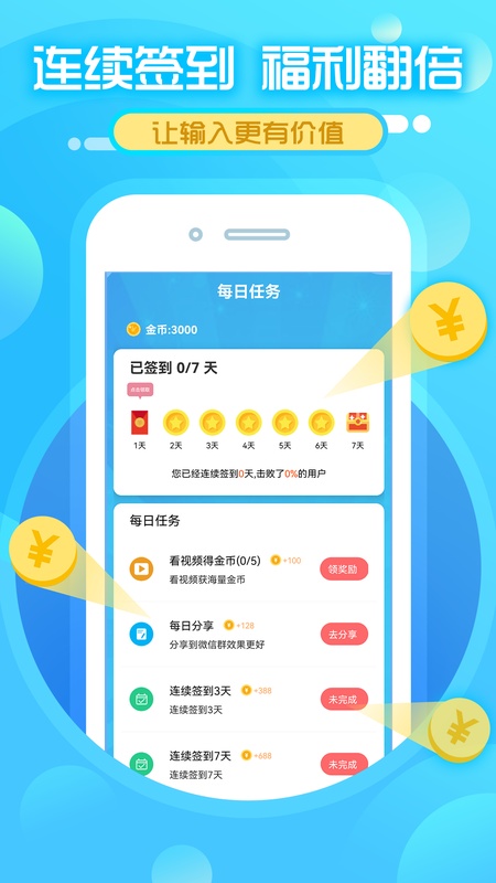 打字赚钱轻松简单,随便打打字就能不停领金币,让零花钱赚到手软。