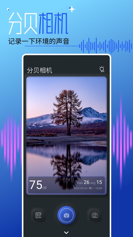 分贝相机,让您在拍摄的同时,也能清楚的明白当前环境的音量情况!