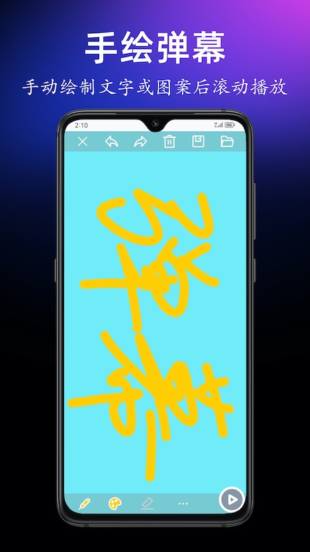 手持弹幕宝是一款简单实用的手机满屏文字滚动工具,现阶段具备两大功能,分别是文字弹幕和手绘弹幕。