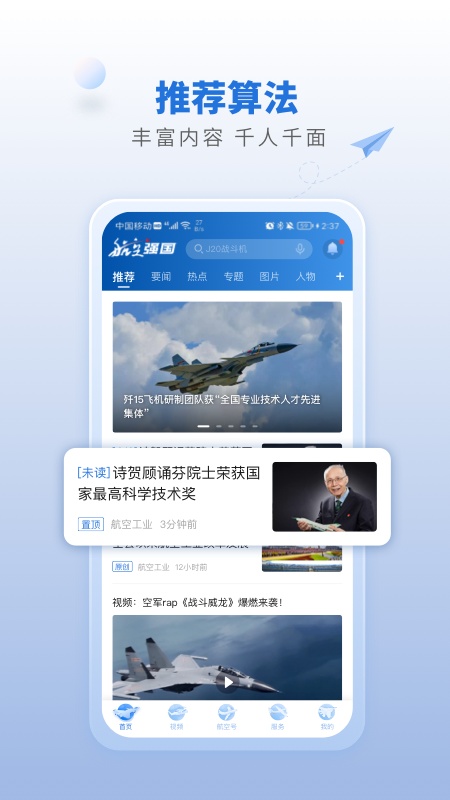 航空强国客户端是航空工业新型主流媒体的旗舰媒体,旨在打造中国航空业具有较强公信力和影响力的权威新闻门户、移动传播枢纽,是立足航空、面向社会的主流舆论引擎、聚合服务平台。它能集成发布航空业新闻资讯,聚合多层次资源和多样性服务,与行业从业者和社会公众开展多维互动,发展成为具有优质内容和良好用户体验、有较强传播力和引导力、助力新时代航空强国建设的新型主流媒体。
