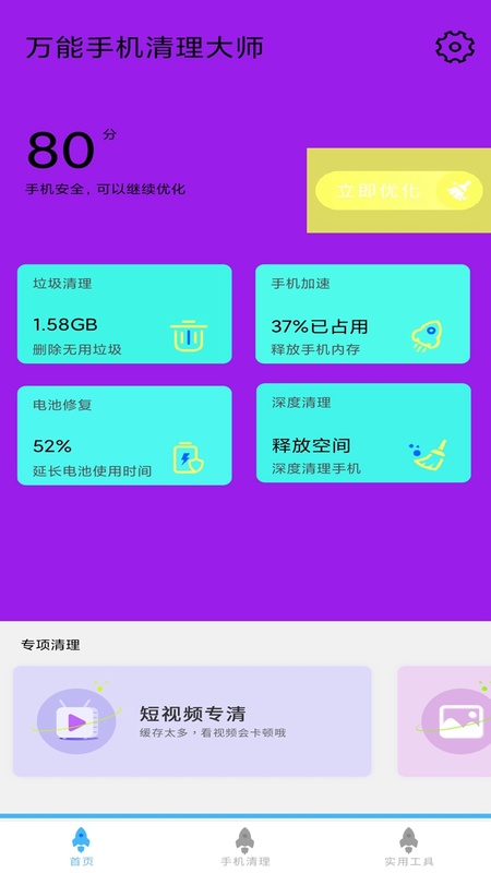 超强清理王,极速优化,一键加速,释放超乎你想象的存储空间;加速内存,解决手机卡慢,操作流畅如新。