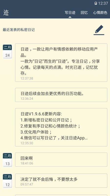 日迹只能自己看到,而心情所有人都可以看到哦~