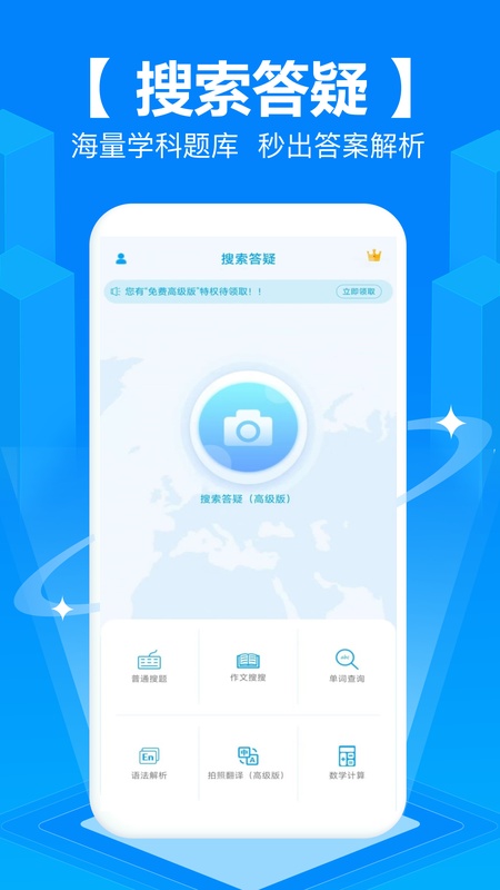 具有搜索答疑功能,可一键搜索查看核对作业答案解析。英语翻译方面,能将完形填空、阅读理解拍照翻译成中文理解。学习英语功能涵盖小学、初中、高中等英语语法解析。科学计算器可进行加减乘除、三角函数、对数运算、高数计算。