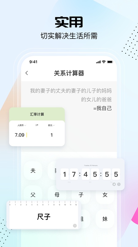 还有很多日常小工具,如尺子、计算器、汇率工具等 App功能