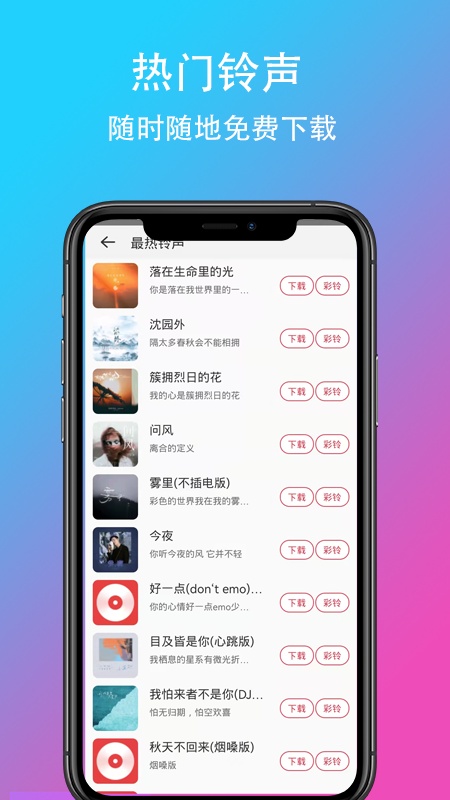 • 铃声大全:抖音快手、影视综艺、欧美、日韩等热门歌曲快速更新
