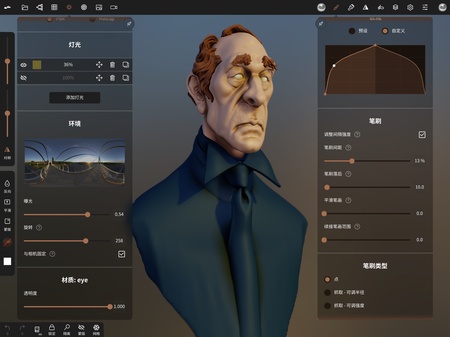 Falloff, alphas, tilings, pencil pressure以及其他笔触参数可以自定义。