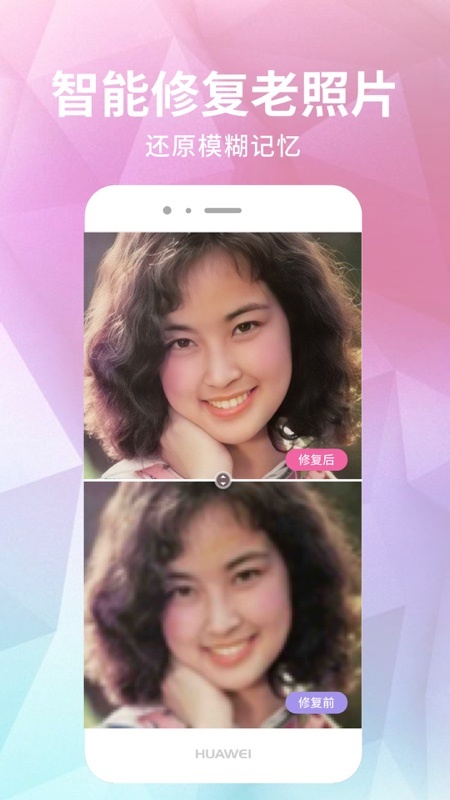 【AI一键修复破损照片】使用人工智能技术,可对模糊照片、低清照片、有斑驳痕迹的照片进行修复,还能针对面部进行高清还原修复。