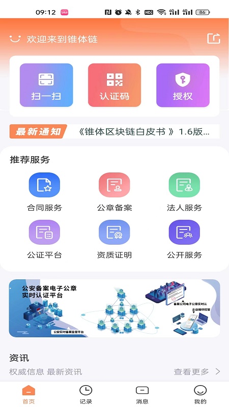当前版本是锥体链app可以进行个人认证,法人认证以及授权给管理员办事员权限进行办公处理,可以发起购买合同,发起合同,以及合同的签署和盖章。可以与好友进行通讯。
