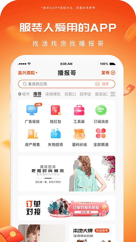 播报哥APP旨在为毛衫、服装及相关产业链上下游从业人员及周边服务配套从业人员解决信息不畅、沟通不及时的问题。它能整合产业圈需求信息与紧俏供应信息,帮助采购商更高效地找货,雇主能快速招到工人和加工人员,供应商也可及时找到有效客户。