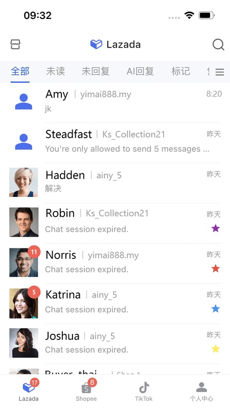 ● 多平台集中回复:一个页面处理200个店铺不卡顿
