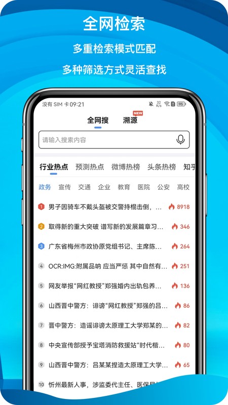 该平台提供全方位的舆情服务,涵盖监测、预警、分析、报告等方面。具备全媒体覆盖能力,能对小视频、电视等进行监测,还拥有图片识别、溯源分析以及生成智能报告的功能。此外,平台获得了新浪微博官方数据授权,可借助微博数据展开舆情相关工作。