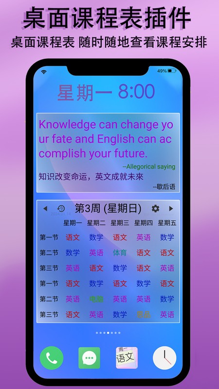 设置好主题样式后,使用桌面小插件功能将其添加到手机或移动设备桌面,以便快速查看课程信息。