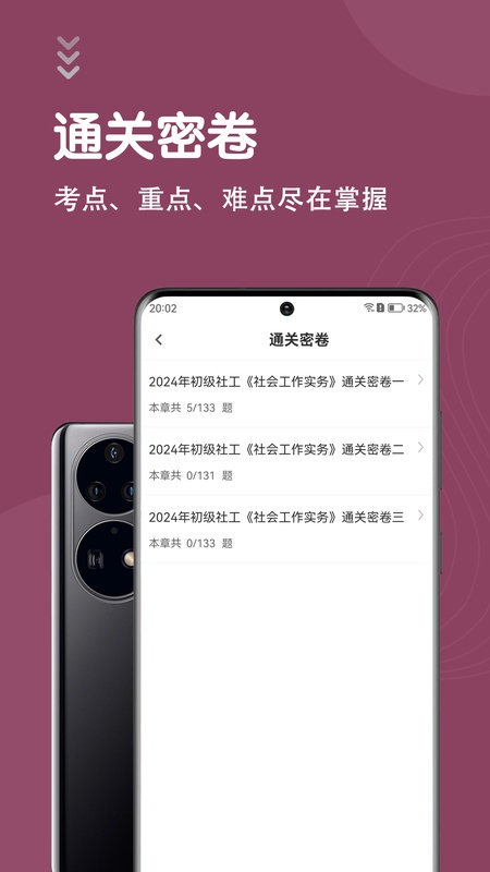 针对不同级别社工考试设置对应题库,满足各阶段考生需求。各功能模块设计贴心,如通关密卷的解析与收藏功能、错题库的反复练习功能、收藏夹的针对性练习功能等,全方位助力考生备考。