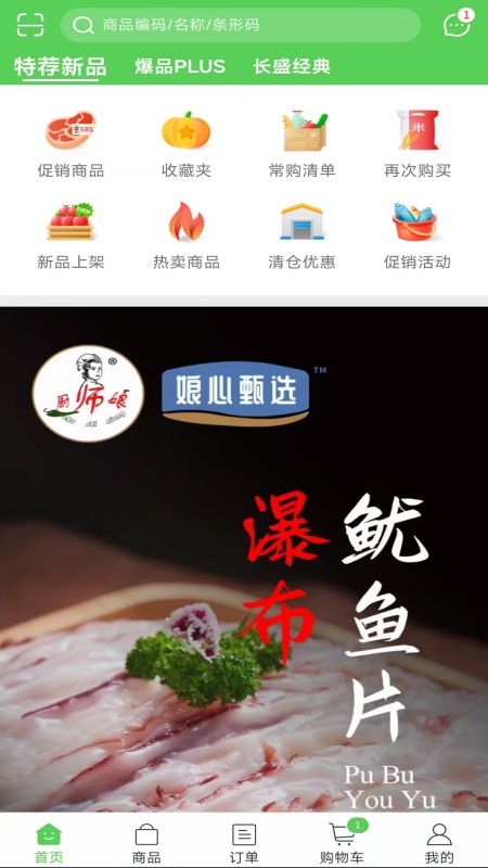 食库鲜生是一款致力于打造一站式食材供应链平台的APP,为客户提供全方位的订货服务。产品丰富,专业冷链,送货上门。客户可以随时随地获取最新资讯,查询商品信息和销售政策,快速下单。食库鲜生,让您买的放心,下单省心,食材采购的必备神器。 应用功能