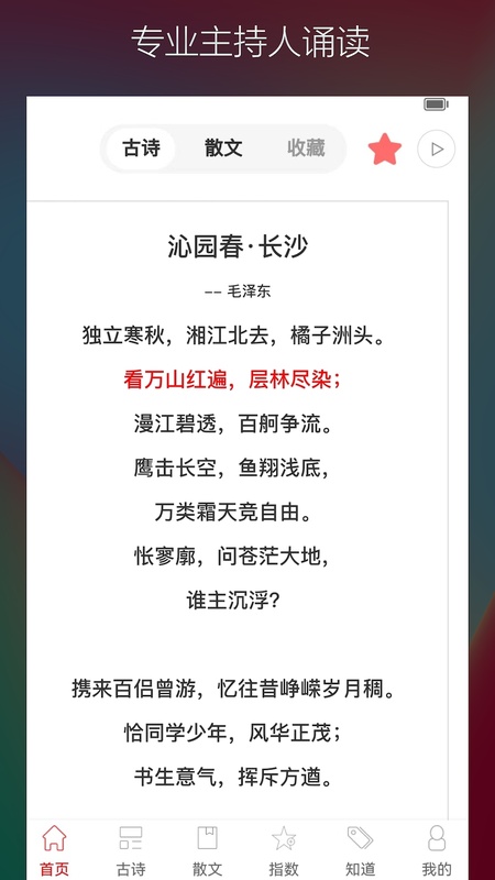 诗词数量众多且经典,涵盖了古诗词和当代诗歌,满足不同用户的需求。专业主持人的诵读增加了诗词欣赏的趣味性和专业性,同步的语音和诗词便于学习。离线数据的设计,摆脱了网络的限制,使用场景更加广泛。精编排版的内容让阅读更加舒适。
