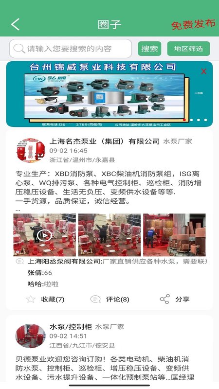 水泵圈,咱水泵行业自己的APP!是水泵采购和销售的垂直行业信息平台,里面包含各种水泵,清水泵,污水泵,化工泵等,在阀门通里找供求,做生意,一应俱全,快来进入吧! 应用功能