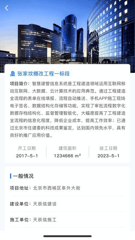 智慧建管信息系统是工程建造领域运用互联网、移动互联网、大数据、云计算技术的应用典范。通过工程建造全流程的表单在线填报、流程自动推送、手机APP施工现场电子签名、数据结构化存储等功能,实现了审批流程数字化、数据存档结构化、监督管理智能化,大幅度提高了工程建造全流程的信息化程度,降低企业成本,提高工作效率;已通过北京市住建委的科技成果鉴定,达到国内领先水平,具有良好的推广应用价值。 软件功能