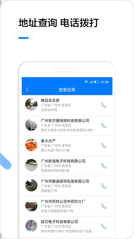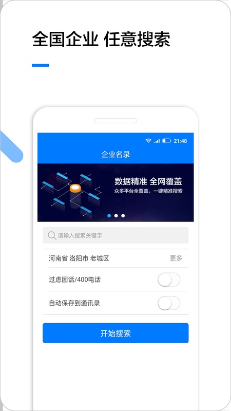根据关键字搜索企业黄页名片信息,保存到虚拟通讯录。