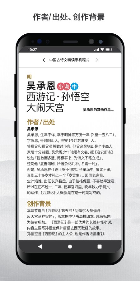 提供详细的注释、译文、导赏、创作背景和作者介绍,助力用户深入理解古诗文内涵。