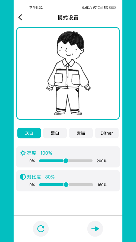 湾进入编辑画面后,可以对画面进行亮度、对比度等效果的编辑。还可以配置文件名修改、图片大小、雕刻速率、激光功率等。
