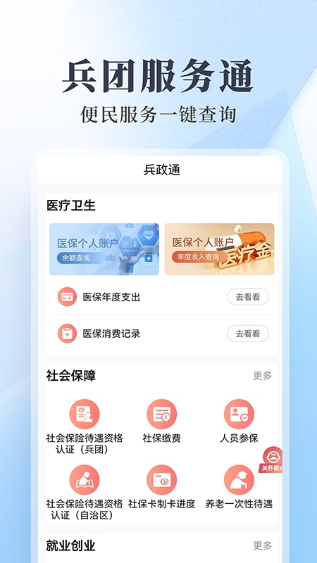 兵政通App是新疆生产建设兵团群众和企业办事的窗口,与兵团政务服务网共同构成一体化的“互联网+政务服务平台”。