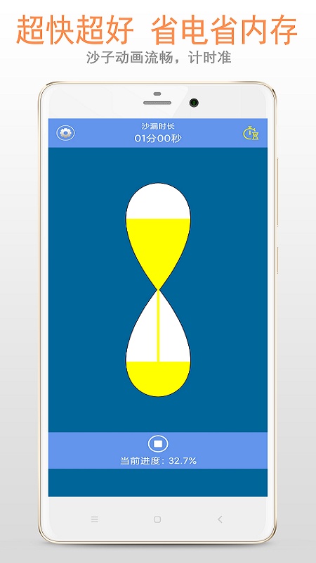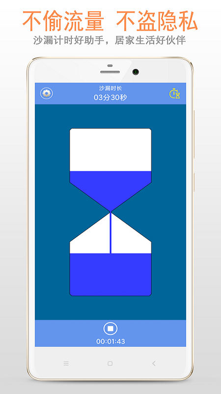 该软件是根据生活所需设计的免费沙漏工具,无后台启动,不偷流量,不盗隐私,不耗内存。操作简单,启动速度快,界面简洁、大方、实用。支持从 Android 4.0 以上的所有版本,兼容性超好。