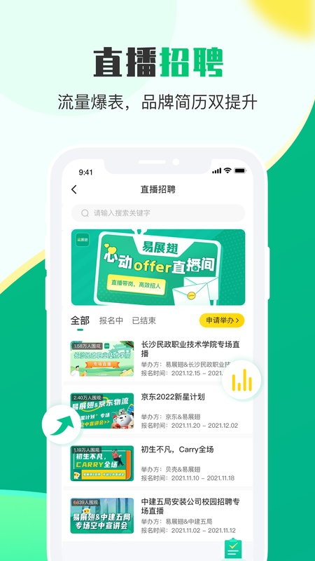 易展翅HR是尊一科技集团旗下企业端专业级招聘平台,平台拥有2000万+各类人才简历库,基于AI和大数据的深度应用,整合多方数据资源,为企业提供社会招聘、校园招聘、 实习及兼职招聘等一站式移动招聘服务。