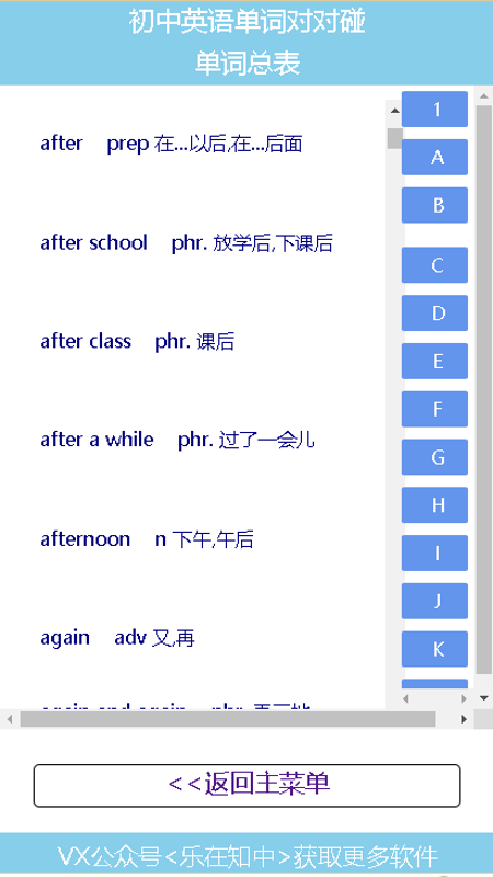 应用名称:初中英语单词对对碰软件
