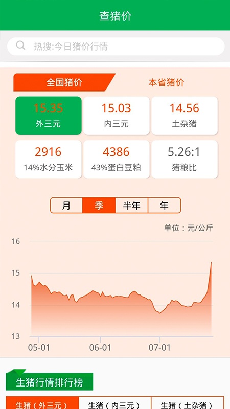 猪好多是猪好多网旗下——专为养猪行业人士打造的移动APP应用,是养猪行业较热门的移动APP应用之一,猪好多内容运营团队通过互联网技术、专业化团队、强大的资讯、数据整合能力为行业人士及猪场生产提供信息参考。目前APP主要版块包含养猪新闻、养猪政策、养猪数据、养猪技术知识、猪价数据查询、走势图查询、报猪价系统、猪猪论坛等内容。加强人与人、人与企业、企业与企业的交流与信息共享,加强养猪行业信息化的快速发展。猪好多APP将致力于搭建中国养猪行业具有影响力的信息平台、知识平台、媒体平台和营销平台。打造专业服务于养猪全产业链的移动互联网与大数据平台。 应用功能